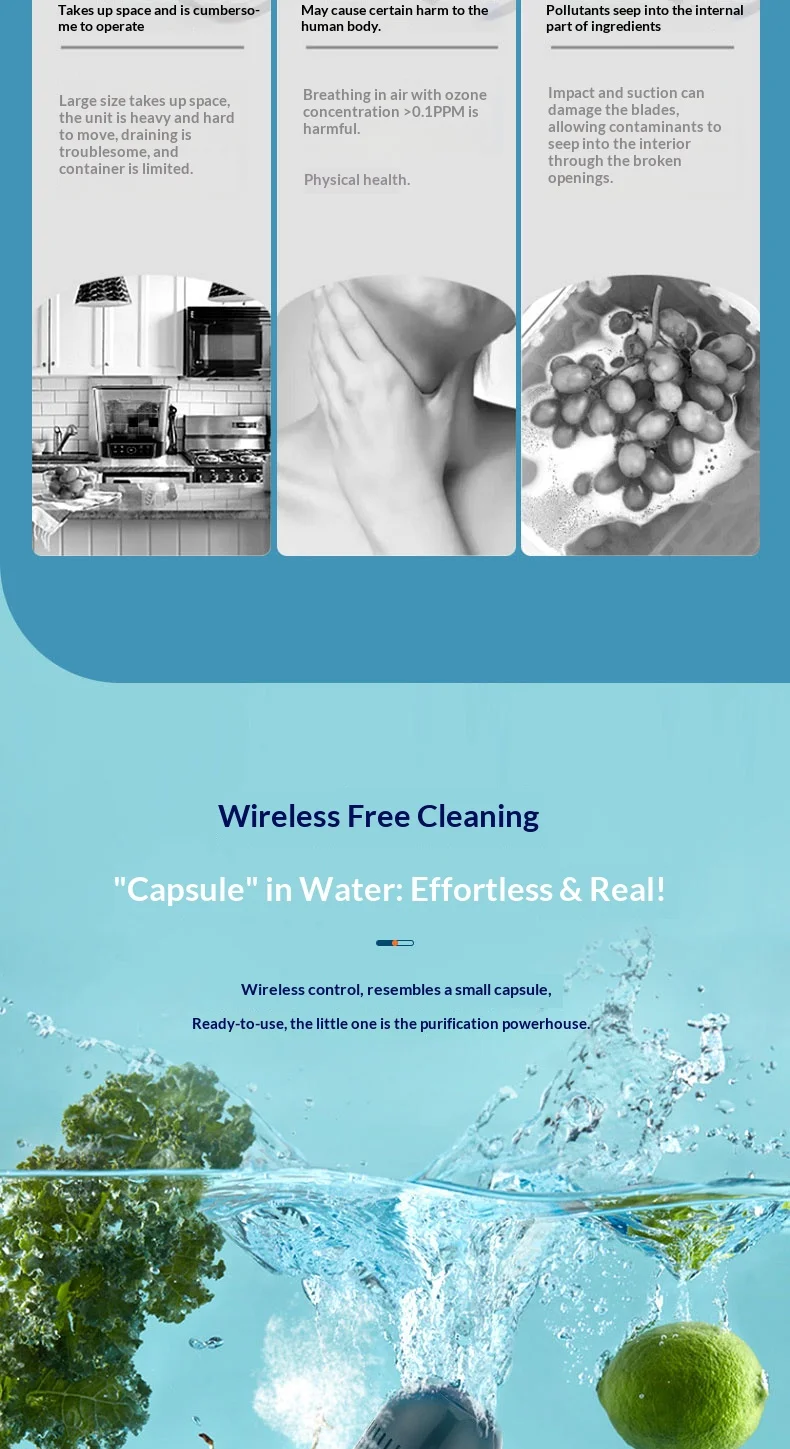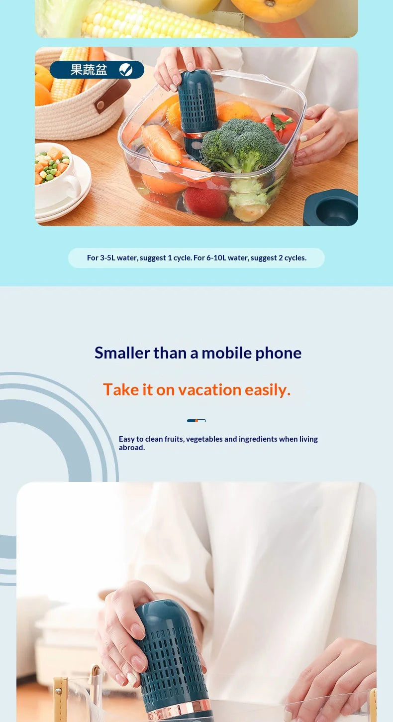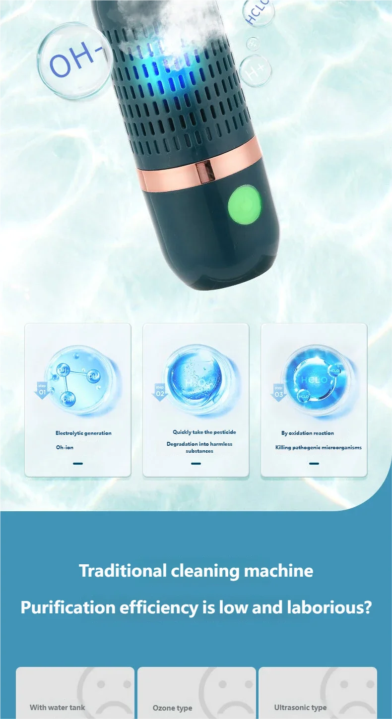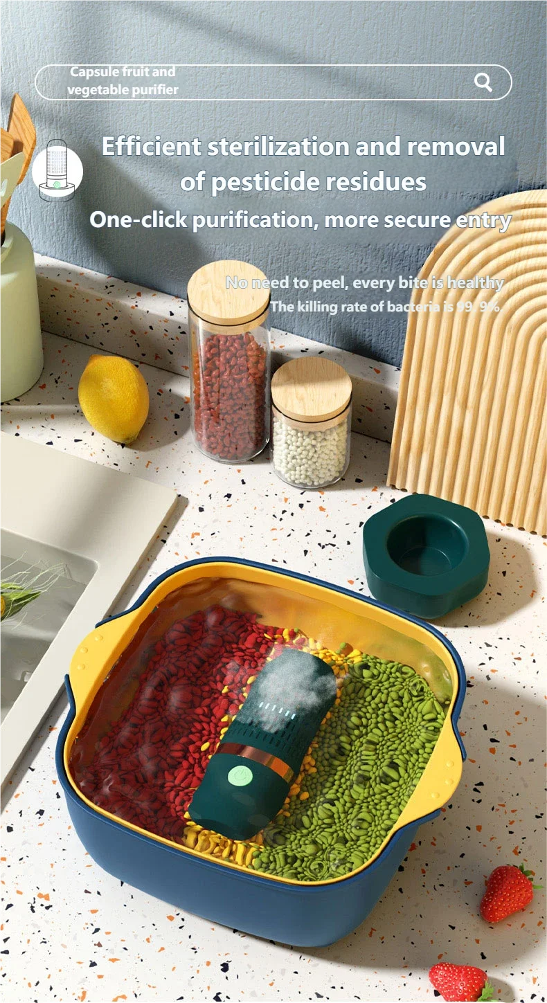 3. Safe and Efficient: Food purifier is waterproof and leak-proof for safe use. It utilizes water as a resource to deeply remove pesticide residues and quickly decompose hormones without disrupting the taste and nutrition of food.